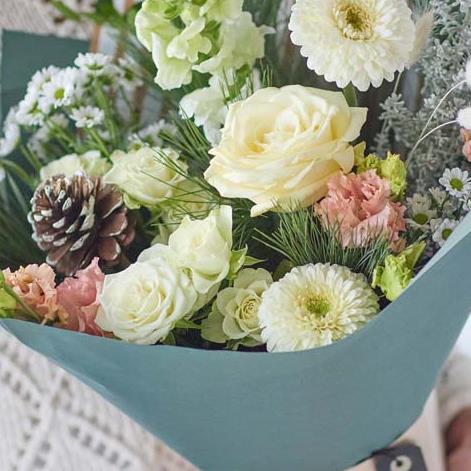 A beautiful little gift box of fresh flowers in soft muted shades, chosen and arranged by hand by a local florist.