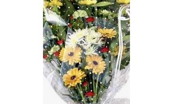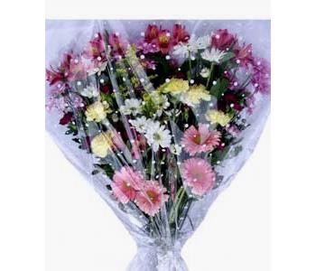 This bouquet is gift wrapped in cellophane and finished with a bow