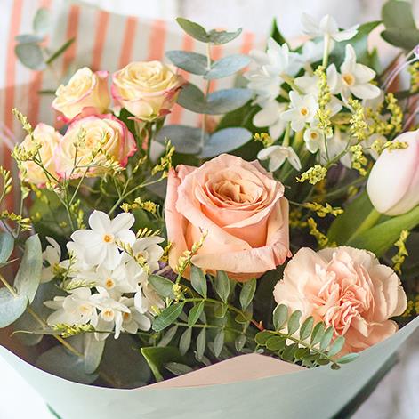 A lovely little giftbox with a pastel toned handcrafted bouquet inside.