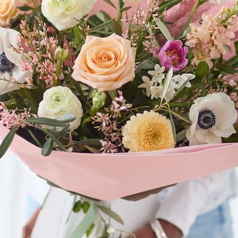 This handcrafted trending bouquet made by a local florist, will feature gorgeous blooms in soft shades, inspired by the spring dawn. Expect shades of peach, dusky pink, lemon and cream, plus dried flowers and foliage.
